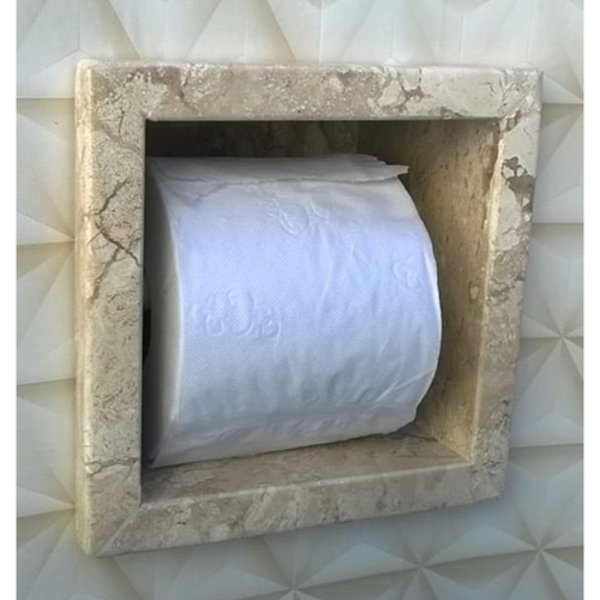 Esse nicho para papel higiênico será o charme do seu banheiro!! E como fica embutido na parede, aproveita melhor o espaço e a circulação. Também se adapta facilmente em qualquer estilo de banheiro. Sem falar na beleza!!nicho para papel higiênico c/ fundo e moldura de 2cm- medidas internas:13x13x10cm (axlxp)- medidas necessárias do recorte na parede: 16x16x11cm (axlxp)- medidas finais (com moldura): 17x17x10cm (axlxp)material: – travertino nacional polido (também conhecido por mármore bege bahia)